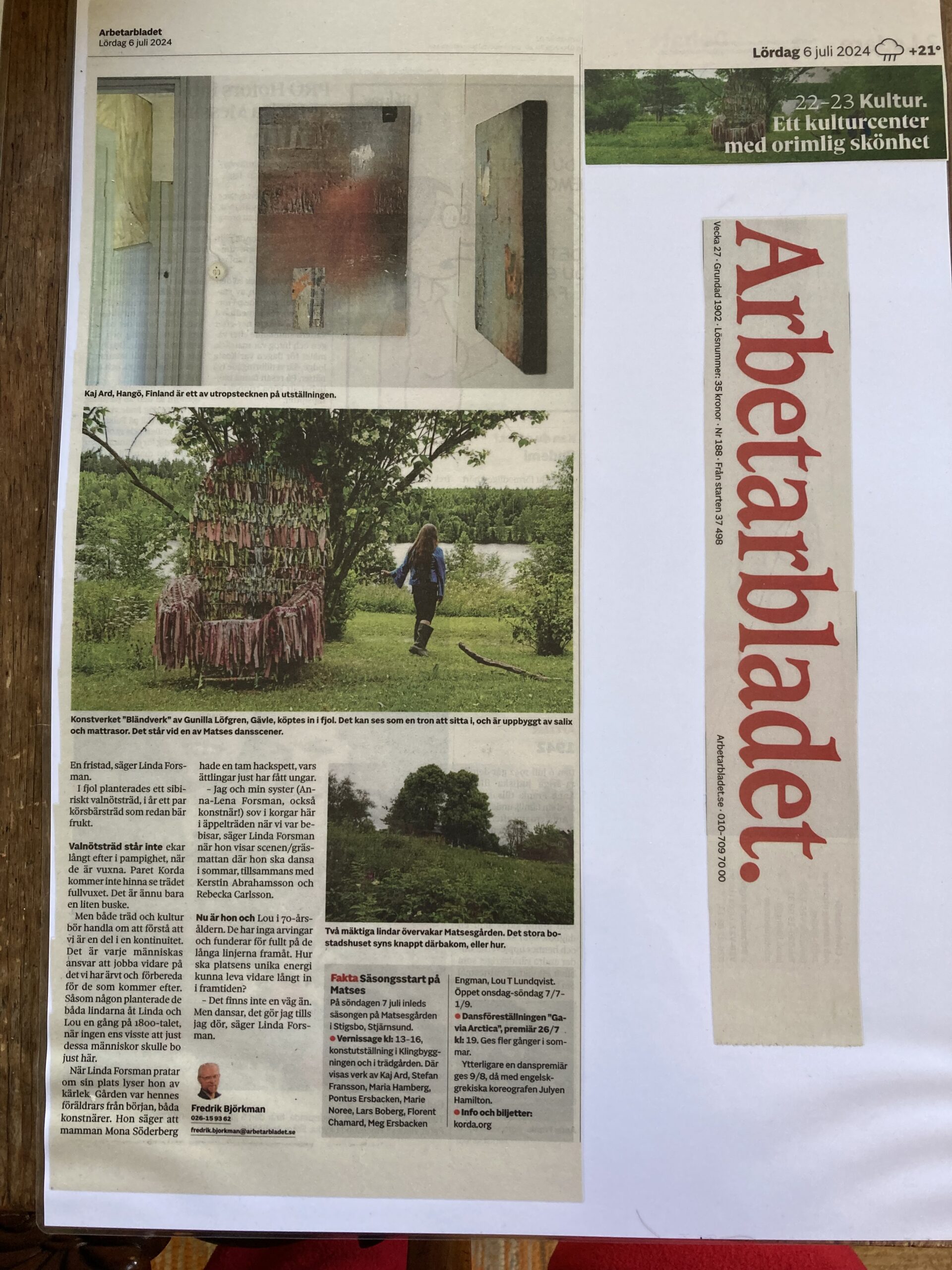 Article in Arbetarbladet July 2024. Page 2